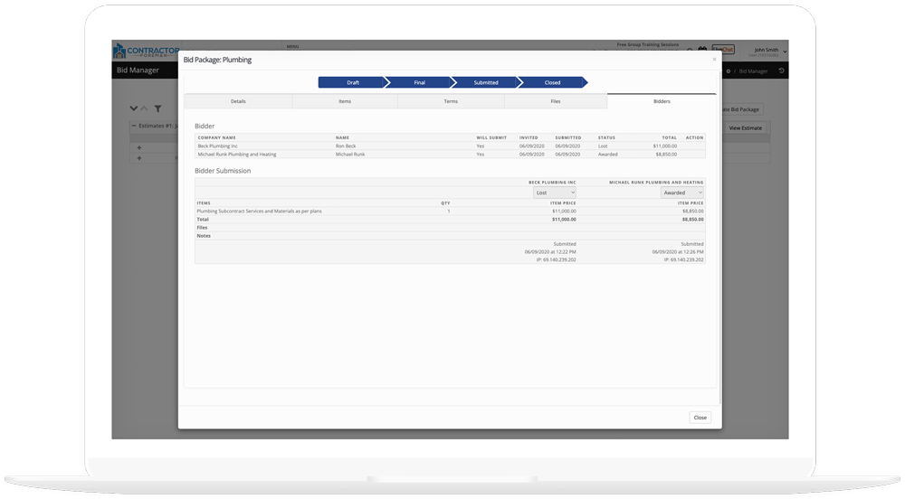 With the wrong system, managing bids can be a task on its own. We make it easy to see all of your bids in one place side-by-side. Easily create bid packages, send invites to bid, and award bids. Your vendors can easily indicate their intent to submit a bid. Once you’ve got your winning bid, instantly generate all your Purchase Orders or Sub-Contracts. All with the click of a button.
