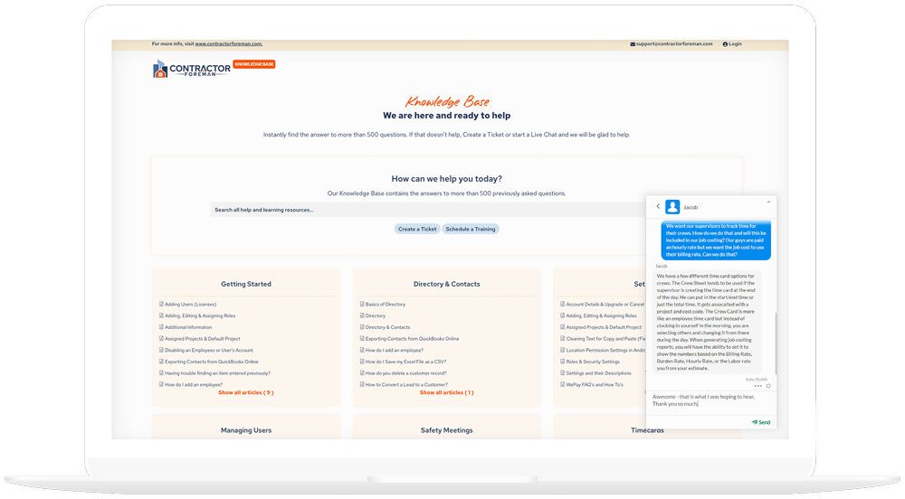 We know that some employees like to push against anything new and that is why we designed Contractor Foreman to be easy and simple to use for everyone.